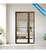 Wil je je interieur of zakelijke ruimte een luxe upgrade geven? Dan is deze stalen binnendeur met glaspaneel een perfecte keuze. De deur is gemaakt van hoogwaardig staal in de kleur brons (RAL 8014) met helder glas en heeft een moderne uitstraling dankzij vier glazen vlakken. Het eigentijdse ontwerp is zeer geschikt voor diverse ruimtes en zorgt voor een ruimtelijk gevoel. We hebben dit design ook beschikbaar met mat, rook en brons rook glas.