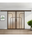 Geef je interieur een luxe upgrade met deze stijlvolle stalen schuifdeuren in de kleur brons (RAL 8014) met mat glas en koofsysteem. De deuren hebben een organische uitstraling dankzij vier glazen vlakken. Het glas laat natuurlijk licht door, wat een ruimtelijk gevoel geeft in elke kamer. Erg handig in kleinere ruimtes die je graag iets groter wilt maken. We hebben dit moderne design ook beschikbaar in helder, rook en brons rook glas.