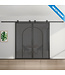 Geef je interieur een moderne make-over met deze stijlvolle stalen schuifdeuren in mat zwart (RAL 9005) met rook glas. De deuren hebben een organische uitstraling dankzij twee glazen vlakken per deur. Het glas laat natuurlijk licht door, wat een ruimtelijk gevoel geeft in elke kamer. Erg handig in kleinere ruimtes die je graag iets groter wilt maken. We hebben dit design ook beschikbaar in helder en mat glas.