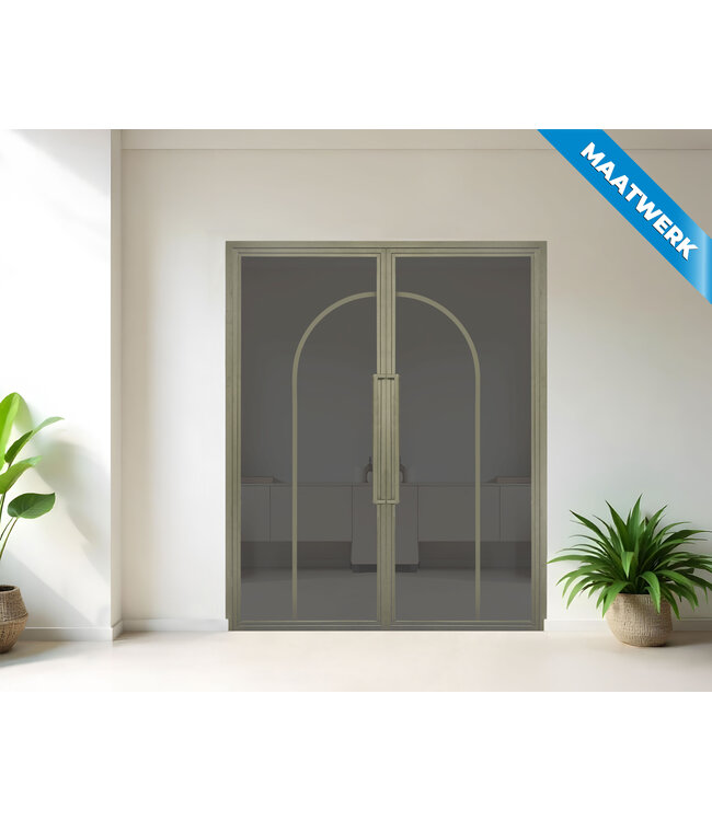 Wil je een stijlvolle uitstraling geven aan je interieur? Dan is deze stalen binnendeur een perfecte keuze! Deze dubbele deur is gemaakt van hoogwaardig staal met rook glas en heeft twee vlakken. De deur combineert een uniek olijfgroen ontwerp (RAL 7002) met zachte ronde vormen en is goed toe te passen in onder andere een moderne of Japandi inrichting. Deze stalen binnendeur zorgt voor sfeer en een ruimtelijk gevoel in huis. De deur is verkrijgbaar in standaardmaten en wordt geleverd inclusief kozijn. Je kunt de deur dus eenvoudig in je muuropening plaatsen. We hebben deze deur ook beschikbaar in helder en mat glas.