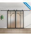 Geef je interieur een moderne make-over met deze stijlvolle stalen schuifdeuren in de kleur zwart (RAL 9005) met mat glas. De deuren hebben een organische uitstraling dankzij vijf glazen vlakken per deur. Het glas laat natuurlijk licht door, wat een ruimtelijk gevoel geeft in elke kamer. Erg handig in kleinere ruimtes die je graag iets groter wilt maken. We hebben dit design ook beschikbaar in helder en rook glas.