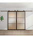 Geef je interieur een moderne make-over met deze stijlvolle in brons (RAL 8014) stalen schuifdeuren met mat glas. De deuren hebben een eigentijdse uitstraling dankzij de drie glazen vakken. Het matte glas laat natuurlijk licht door, wat een ruimtelijk gevoel geeft in elke kamer. Erg handig in kleinere ruimtes die je graag iets groter wilt maken. We hebben de deuren niet alleen met mat glas in ons assortiment, maar ook met helder of (brons) rook glas.