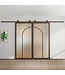 Voor de montage van het standaard meegeleverde schuifdeursysteem (rails en rollers) heb je 13cm ruimte boven de deur nodig. De deur dient 1cm boven de grond gemonteerd te worden in combinatie met de deurgeleider. In totaal moet je dus 13cm + 1cm +deurhoogte aan ruimte hebben om de deur te kunnen monteren. Tot slot moet de stalen schuifdeur in de breedte minimaal 1,5cm aan weerszijde van de deuropening uitsteken om de deuropening tochtvrij af te kunnen sluiten en is er 2,6cm ruimte nodig tussen de deur en muur. Plafondbeugels worden niet standaard mee geleverd. Twijfel je of jouw muur de schuifdeur kan dragen? Neem dan gerust contact met ons op.