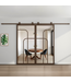 Voor de montage van het standaard meegeleverde schuifdeursysteem (rails en rollers) heb je 13cm ruimte boven de deur nodig. De deur dient 1cm boven de grond gemonteerd te worden in combinatie met de deurgeleider. In totaal moet je dus 13cm + 1cm +deurhoogte aan ruimte hebben om de deur te kunnen monteren. Tot slot moet de stalen schuifdeur in de breedte minimaal 1,5cm aan weerszijde van de deuropening uitsteken om de deuropening tochtvrij af te kunnen sluiten en is er 2,6cm ruimte nodig tussen de deur en muur. Plafondbeugels worden niet standaard mee geleverd. Twijfel je of jouw muur de schuifdeur kan dragen? Neem dan gerust contact met ons op.