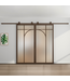 Geef je interieur een moderne make-over met deze stijlvolle stalen schuifdeuren in de kleur brons (RAL 8014) met mat glas. De deuren hebben een organische uitstraling dankzij de vijf glazen vlakken. Het glas laat natuurlijk licht door, wat een ruimtelijk gevoel geeft. Erg handig in kleinere ruimtes die je graag iets groter wil maken. We hebben dit design ook beschikbaar met helder, brons rook of rook glas. Tip: naast de stalen deuren hebben we ook elegante houten schuifdeuren.
