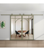 Voor de montage van het standaard meegeleverde schuifdeursysteem (rails en rollers) heb je 13cm ruimte boven de deur nodig. De deur dient 1cm boven de grond gemonteerd te worden in combinatie met de deurgeleider. In totaal moet je dus 13cm + 1cm +deurhoogte aan ruimte hebben om de deur te kunnen monteren. Tot slot moet de stalen schuifdeur in de breedte minimaal 1,5cm aan weerszijde van de deuropening uitsteken om de deuropening tochtvrij af te kunnen sluiten en is er 2,6cm ruimte nodig tussen de deur en muur. Plafondbeugels worden niet standaard mee geleverd. Twijfel je of jouw muur de schuifdeur kan dragen? Neem dan gerust contact met ons op.