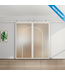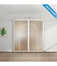 Geef je interieur een moderne make-over met deze stijlvolle stalen schuifdeuren in de kleur wit (RAL 9010) met mat glas. De deuren hebben een organische uitstraling dankzij twee glazen vlakken per deur. Het glas laat natuurlijk licht door, wat een ruimtelijk gevoel geeft in elke kamer. Erg handig in kleinere ruimtes die je graag iets groter wilt maken. We hebben dit design ook beschikbaar in helder en rook glas.