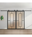 Geef je interieur een moderne make-over met deze stijlvolle stalen schuifdeuren in matzwart (RAL 9005) met mat glas. De deuren hebben een eigentijdse uitstraling dankzij vijf glazen vakken. Het glas laat natuurlijk licht door, wat een ruimtelijk gevoel geeft. Ideaal in kleinere ruimtes die je graag iets groter wil maken. De deuren zijn beschikbaar in verschillende maten, waardoor ze in vrijwel elke deurpost passen. Naast dat de deuren ruimte besparen, doordat ze gemakkelijk langs de wand bewegen, zijn de deuren ook nog eens een duurzame oplossing door de kras- en vochtwerende poeder coating. Schuifdeuren zijn veelzijdig en kunnen worden gebruikt in verschillende ruimtes in het huis, waaronder slaapkamers, badkamers en kantoren. We hebben dit design ook beschikbaar met helder en rook glas.