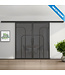 Geef je interieur een luxe make-over met deze stijlvolle stalen schuifdeuren in matzwart (RAL 9005) met rook glas en koofsysteem. De deuren hebben een organische uitstraling dankzij vier glazen vakken per deur. Het glas laat natuurlijk licht door, wat een ruimtelijk gevoel geeft. Erg handig in kleinere ruimtes die je graag iets groter wil maken. De deur is beschikbaar in verschillende maten, waardoor hij in vrijwel iedere deurpost past. Naast dat de deur ruimte bespaart, doordat hij gemakkelijk langs de wand beweegt, biedt hij ook een duurzame oplossing door een kras- en vochtwerende poedercoating. Schuifdeuren zijn veelzijdig en kunnen worden gebruikt in verschillende ruimtes in het huis, waaronder slaapkamers, badkamers en kantoren. We hebben dit design ook beschikbaar met helder en mat glas.