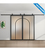 Voor de montage van het standaard meegeleverde schuifdeursysteem (rails en rollers) heb je 13cm ruimte boven de deur nodig. De deur dient 1cm boven de grond gemonteerd te worden in combinatie met de deurgeleider. In totaal moet je dus 13cm + 1cm +deurhoogte aan ruimte hebben om de deur te kunnen monteren. Tot slot moet de stalen schuifdeur in de breedte minimaal 1,5cm aan weerszijde van de deuropening uitsteken om de deuropening tochtvrij af te kunnen sluiten en is er 2,6cm ruimte nodig tussen de deur en muur. Plafondbeugels worden niet standaard mee geleverd. Twijfel je of jouw muur de schuifdeur kan dragen? Neem dan gerust contact met ons op.