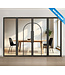 Wil je jouw interieur of zakelijke ruimte een luxe uitstraling geven? Dan bieden onze hydraulische dubbele taatsdeuren met glaspanelen de stijlvolle oplossing die je zoekt. De deuren zijn gemaakt van hoogwaardig staal in matzwart (RAL 9005) en helder glas en hebben een organische uitstraling dankzij twee ronde vlakken per deur. Het moderne ontwerp zorgt voor een ruimtelijk gevoel in huis. De taatsdeuren en glaspanelen worden compleet geleverd, het deurbeslag is inbegrepen. We hebben dit design ook beschikbaar met mat en rook glas.
