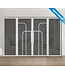 Bij drie gemeten sparingbreedtes van bijvoorbeeld 220 cm, 220,3 cm en 219,8 cm, geef je 219,8 cm op als sparingsbreedte. Tijdens het bestellen geef je de breedte van de deuren aan, op basis hiervan bepalen wij de maten van de glaspanelen. Voor het berekenen van de maten van de zijpanelen gebruiken wij de sparingsbreedte en de deurbreedte.