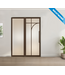 Bij drie gemeten sparingbreedtes van bijvoorbeeld 220 cm, 220,3 cm en 219,8 cm, geef je 219,8 cm op als sparingsbreedte. Tijdens het bestellen geef je de breedte van de deuren aan, op basis hiervan bepalen wij de maten van de glaspanelen. Voor het berekenen van de maten van de zijpanelen gebruiken wij de sparingsbreedte en de deurbreedte.