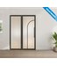 Bij drie gemeten sparingbreedtes van bijvoorbeeld 220 cm, 220,3 cm en 219,8 cm, geef je 219,8 cm op als sparingsbreedte. Tijdens het bestellen geef je de breedte van de deuren aan, op basis hiervan bepalen wij de maten van de glaspanelen. Voor het berekenen van de maten van de zijpanelen gebruiken wij de sparingsbreedte en de deurbreedte.