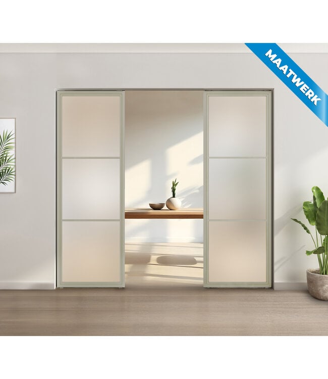 Deze glaspanelen zijn ideaal wanneer je jouw interieur een luxe upgrade wil geven. Het stijlvolle ontwerp zorgt voor een ruimtelijk gevoel in huis. Deze stalen glaspanelen zijn gemaakt van hoogwaardig staal in de kleur kiezelgrijs (RAL 7032) met drie vakken van matglas. Het ontwerp is zeer geschikt voor onder andere een moderne, Scandinavische of industriële inrichting De glaspanelen geven een natuurlijke lichtinval en bieden een praktische oplossing voor meer privacy, rust en sfeer in huis. Ze worden compleet geleverd, het beslag is inbegrepen. We hebben dit design ook beschikbaar met helder en rookglas.