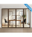 Wil je jouw interieur of zakelijke ruimte een luxe uitstraling geven? Dan bieden onze hydraulische dubbele taatsdeuren met glaspanelen de stijlvolle oplossing die je zoekt. De deuren zijn gemaakt van hoogwaardig staal in brons (RAL 8014) en helder glas en hebben een organische uitstraling dankzij vier ronde vlakken per deur. Het moderne ontwerp zorgt voor een ruimtelijk gevoel in huis. De taatsdeuren en glaspanelen worden compleet geleverd, het deurbeslag is inbegrepen. We hebben dit design ook beschikbaar met mat, rook en brons rook glas.