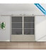 Voor de montage van het standaard meegeleverde schuifdeursysteem (rails en rollers) heb je 13 cm ruimte boven de deur nodig. De deur dient 1 cm boven de grond gemonteerd te worden in combinatie met de deurgeleider. In totaal heb je dus 13 cm + 1 cm + deurhoogte aan ruimte nodig om de deur te kunnen monteren.