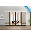 Wil je je interieur of zakelijke ruimte een luxe upgrade geven? Dan zijn deze dubbele stalen schuifdeuren met glaspanelen en koofsysteem een perfecte keuze. Het design combineert een ontwerp in de kleur brons (RAL 8014) met vijf vlakken van helder glas en is goed toe te passen in onder andere een moderne inrichting. De deuren zorgen voor sfeer en een ruimtelijk gevoel in huis of op kantoor. Deze schuifdeuren zijn voorzien van een duurzame, kras- en vochtwerende poedercoating voor langdurig gebruik. We hebben dit design ook beschikbaar met mat, rook en brons rook glas.