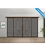 Wil je je interieur of zakelijke ruimte een luxe upgrade geven? Dan zijn deze dubbele stalen schuifdeuren met glaspanelen en koofsysteem een perfecte keuze. Het design combineert een ontwerp in de kleur brons (RAL 8014) met vijf vlakken van rook glas en is goed toe te passen in onder andere een moderne inrichting. De deuren zorgen voor sfeer en een ruimtelijk gevoel in huis of op kantoor. Deze schuifdeuren zijn voorzien van een duurzame, kras- en vochtwerende poedercoating voor langdurig gebruik. We hebben dit design ook beschikbaar met helder, mat en brons rook glas.