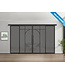 Wil je jouw interieur of zakelijke ruimte een luxe make-over geven? Dan bieden deze dubbele stalen schuifdeuren met koofsysteem en glaspanelen de stijlvolle oplossing die je zoekt. De schuifdeuren zijn gemaakt van hoogwaardig staal in matzwart (RAL 9005) met rook glas. De deuren hebben een moderne uitstraling dankzij vijf glazen vlakken per deur. Het glas laat natuurlijk licht door, wat een ruimtelijk gevoel geeft. Erg handig in kleinere ruimtes die je graag iets groter wil maken. De deur is beschikbaar in verschillende maten, waardoor hij in vrijwel iedere deurpost past. Naast dat de deur ruimte bespaart, doordat hij gemakkelijk langs de wand beweegt, biedt hij ook een duurzame oplossing door een kras- en vochtwerende poedercoating. Schuifdeuren zijn veelzijdig en kunnen worden gebruikt in verschillende ruimtes in het huis, waaronder slaapkamers, badkamers en kantoren. We hebben dit design ook beschikbaar met helder en mat glas.