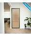 De deur is verkrijgbaar in standaard maten en wordt geleverd inclusief kozijn. Je kan de deur dus eenvoudig in jouw muuropening plaatsen. Niet alleen kunt u deze deur met rook glas bij ons vinden, maar ook helder en mat glas hebben we in ons assortiment.