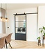 Voor de montage van het standaard meegeleverde schuifdeursysteem (rails en rollers) heb je 13cm ruimte boven de deur nodig. De deur dient 1cm boven de grond gemonteerd te worden in combinatie met de deurgeleider. In totaal moet je dus 13cm + 1cm +deurhoogte aan ruimte hebben om de deur te kunnen monteren. Tot slot moet de stalen schuifdeur in de breedte minimaal 1,5cm aan weerszijde van de deuropening uitsteken om de deuropening tochtvrij af te kunnen sluiten en is er 2,6cm ruimte nodig tussen de deur en muur. Plafondbeugels worden niet standaard mee geleverd. Twijfel je of jouw muur de schuifdeur kan dragen? Neem dan gerust contact met ons op.