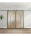 Voor de montage van het standaard meegeleverde schuifdeursysteem (rails en rollers) heb je 13cm ruimte boven de deur nodig. De deur dient 1cm boven de grond gemonteerd te worden in combinatie met de deurgeleider. In totaal moet je dus 13cm + 1cm +deurhoogte aan ruimte hebben om de deur te kunnen monteren. Tot slot moet de stalen schuifdeur in de breedte minimaal 1,5cm aan weerszijde van de deuropening uitsteken om de deuropening tochtvrij af te kunnen sluiten en is er 2,6cm ruimte nodig tussen de deur en muur. Plafondbeugels worden niet standaard mee geleverd. Twijfel je of jouw muur de schuifdeur kan dragen? Neem dan gerust contact met ons op.