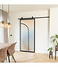 Geef je interieur een moderne make-over met deze stijlvolle stalen schuifdeur. De deur is gemaakt van kwalitatief staal in mat zwart (RAL 9005) en mat glas. Hij heeft een eigentijdse uitstraling dankzij twee glazen vakken. Het matte glas laat een diffuus licht door, wat een natuurlijk gevoel geeft in elke kamer. Erg handig in kleinere ruimtes die je graag groter wil maken. We hebben de deur niet alleen met mat glas in ons assortiment, maar ook met helder of rook glas.