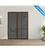 Bij drie gemeten sparingbreedtes van bijvoorbeeld 220 cm, 220,3 cm en 219,8 cm, geef je 219,8 cm op als sparingsbreedte. Tijdens het bestellen geef je de breedte van de deuren aan, op basis hiervan bepalen wij de maten van de glaspanelen. Voor het berekenen van de maten van de zijpanelen gebruiken wij de sparingsbreedte en de deurbreedte.