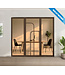 Wil je jouw interieur of zakelijke ruimte een luxe uitstraling geven? Dan bieden onze hydraulische taatsdeuren met glaspanelen de stijlvolle oplossing die je zoekt. De deur is gemaakt van hoogwaardig staal in de kleur brons (RAL 8014) en brons rook glas en heeft een organische uitstraling dankzij vier ronde vlakken. Het moderne ontwerp zorgt voor een ruimtelijk gevoel in huis. De taatsdeuren en glaspanelen worden compleet geleverd, het deurbeslag is inbegrepen. We hebben dit design ook beschikbaar met helder, mat en rook glas.