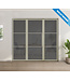 Bij drie gemeten sparingbreedtes van bijvoorbeeld 220 cm, 220,3 cm en 219,8 cm, geef je 219,8 cm op als sparingsbreedte. Tijdens het bestellen geef je de breedte van de deuren aan, op basis hiervan bepalen wij de maten van de glaspanelen. Voor het berekenen van de maten van de zijpanelen gebruiken wij de sparingsbreedte en de deurbreedte.